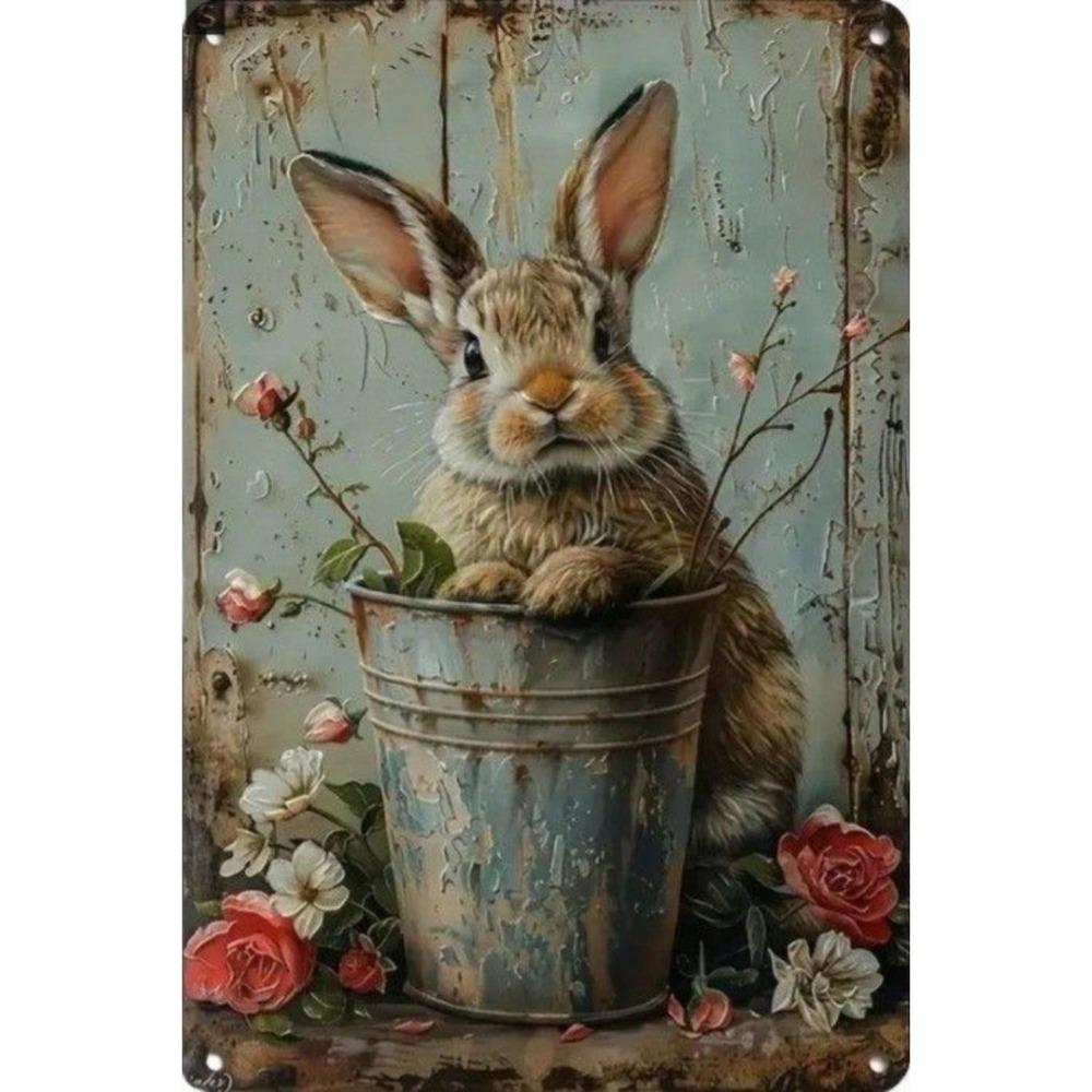 Easter Metal Wall Art Decor Vintage Cartoon Bunny Rabbit Rustic Tin Sign Home