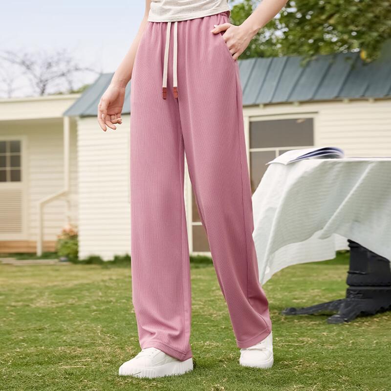 Xiangying Women's Pink High-Waist Wide-Leg Pants