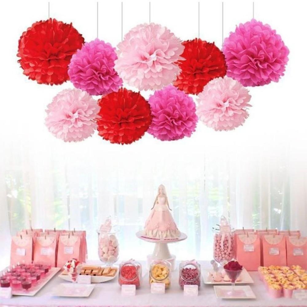 9Pcs/Pack DIY Craft Tissue Paper Flower Romantic Flower Balls Decorative Garland Pink Color Paper Flower Balls Celebration