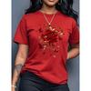 Women'S Floral Rose Butterfly Print T-Shirt Casual Crew Neck Short Sleeve Knit Polyester Regular Length Seasons Plus Size Tees