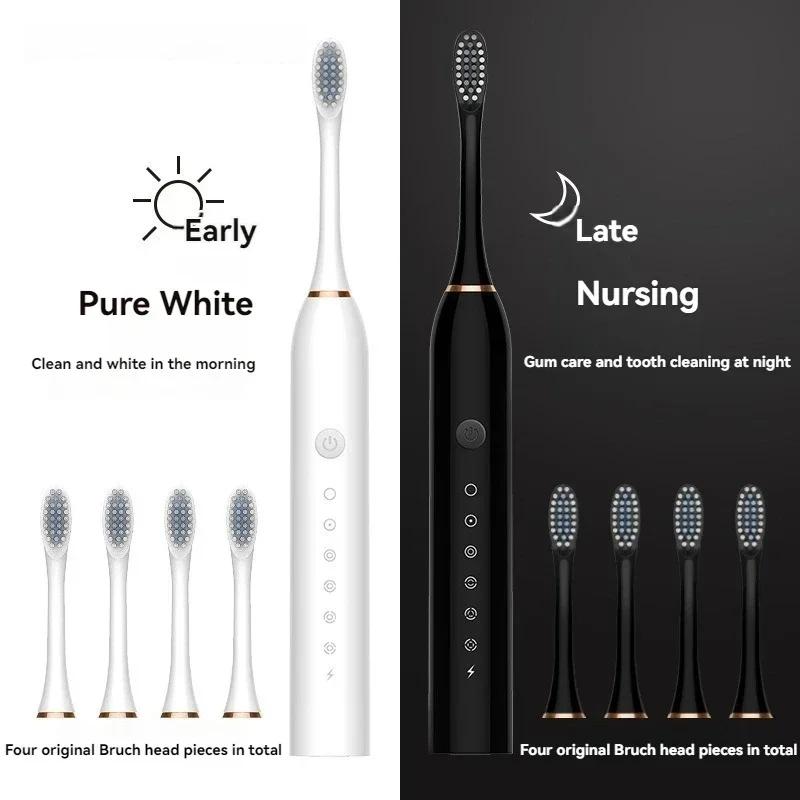 Electric Ultrasonic Toothbrush Six Speed Mode Home Soft Hair USB Charging Waterproof Adult Tooth Cleaner Automatic Couple Set