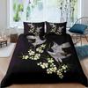 Comforter Crane Queen Size Japanese-Style Bedding Set Cherry Blossoms Pattern Women Girls Japanese Traditional