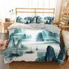 Comforter Ink Painting King Queen Chinese Landscape Painting Bedding Set Adults Idyllic Scenery Mountain Polyester