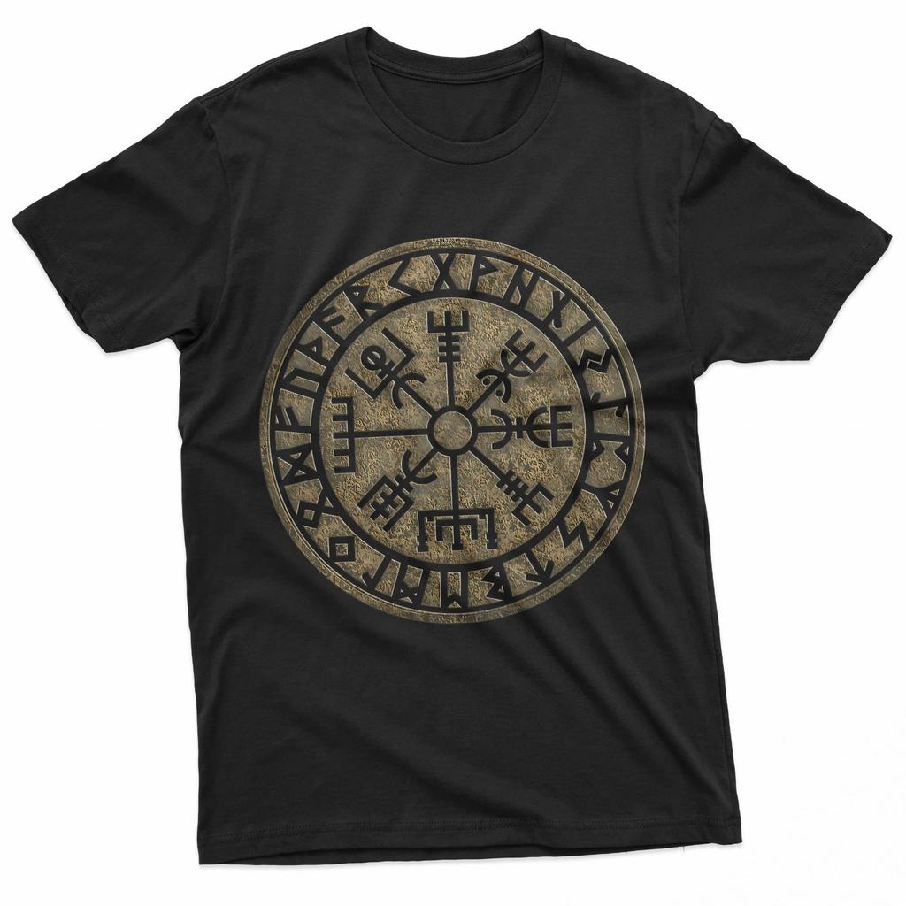 Vegvisir Viking Compass Norse Symbol Protection Nordic Vikings 100% Cotton T-shirt Mens Tees Top