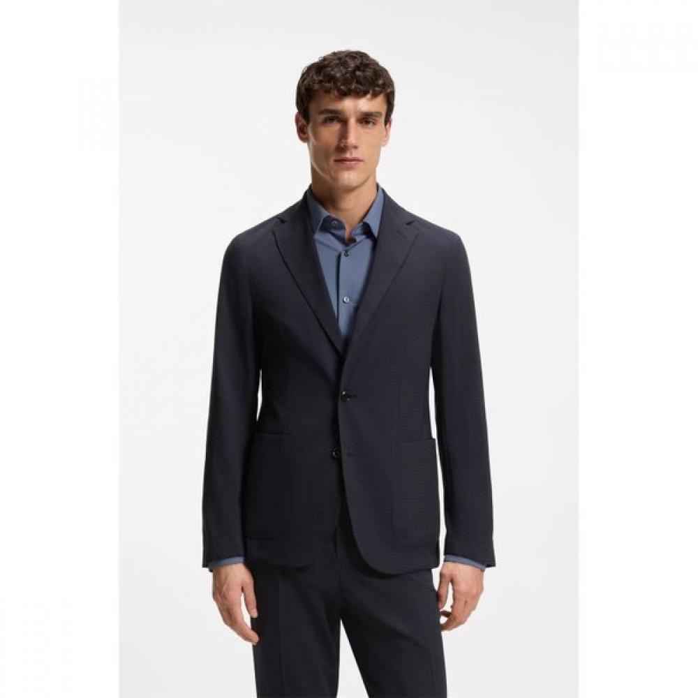 The Slim Fit Washable Wool Blend Packable Blazer comes in a Dark Blue color and is made from soft and lightweight wool blend material. It is particularly wrinkle-resistant and easy to maintain, making it convenient for trips and travel. This blazer can be worn on both formal and casual occasions, allowing for various style matchings.