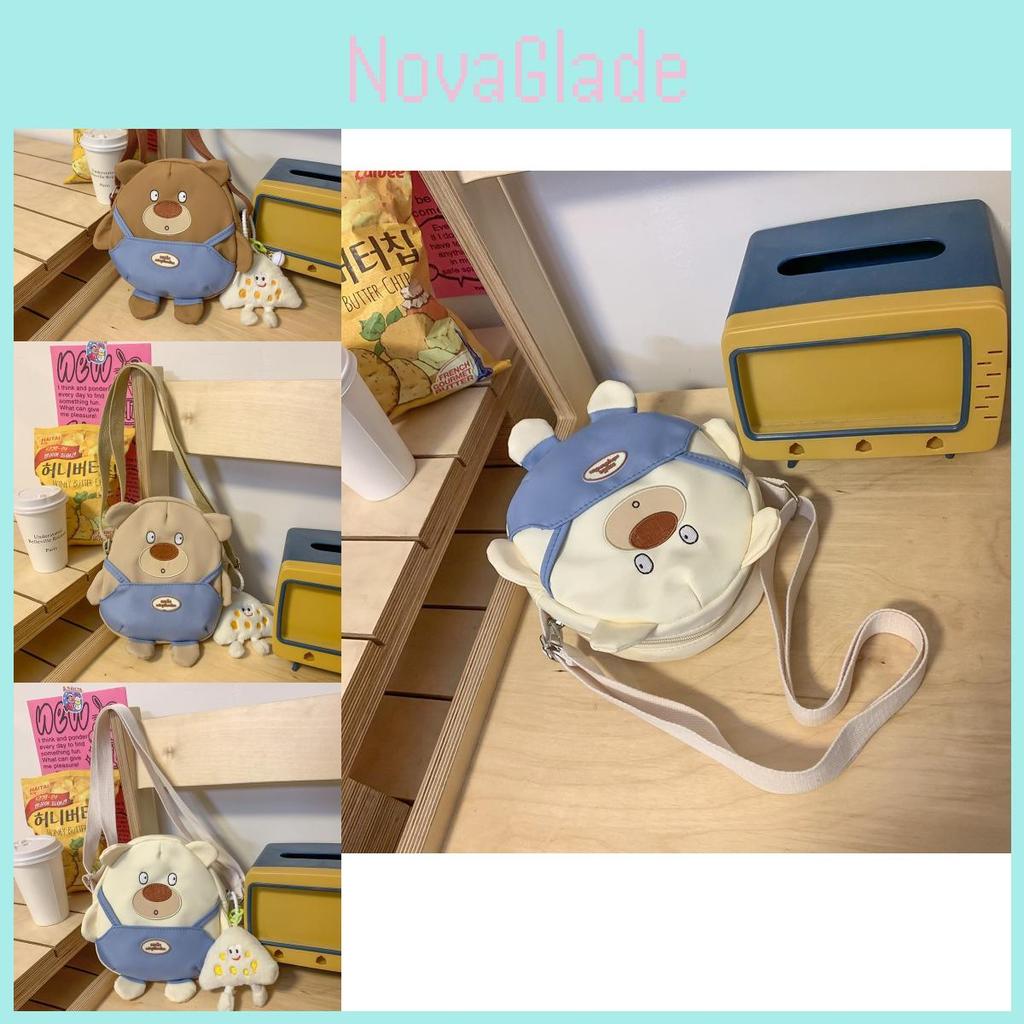 Crafted from high-quality canvas, this bear-themed crossbody bag is designed to be ultra-lightweight, guaranteeing comfort without compromising durability. The interior is lined with soft polyester, offering a plush and protective layer for your belongings. The bag is adorned with an embroidered bear image, adding a delightful touch of cuteness and whimsy. Available in a variety of colorswhite, khaki, and browneach option comes with or without an additional charm, allowing you to personalize your look according to your preferences.