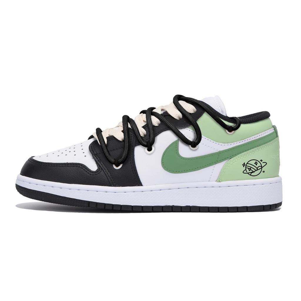 Jordan Air Jordan 1 Puppy Fragment Slip Resistant Abrasion Resistant Low top Vintage Basketball Shoes Men's Black Green 553558-131(Team85-)