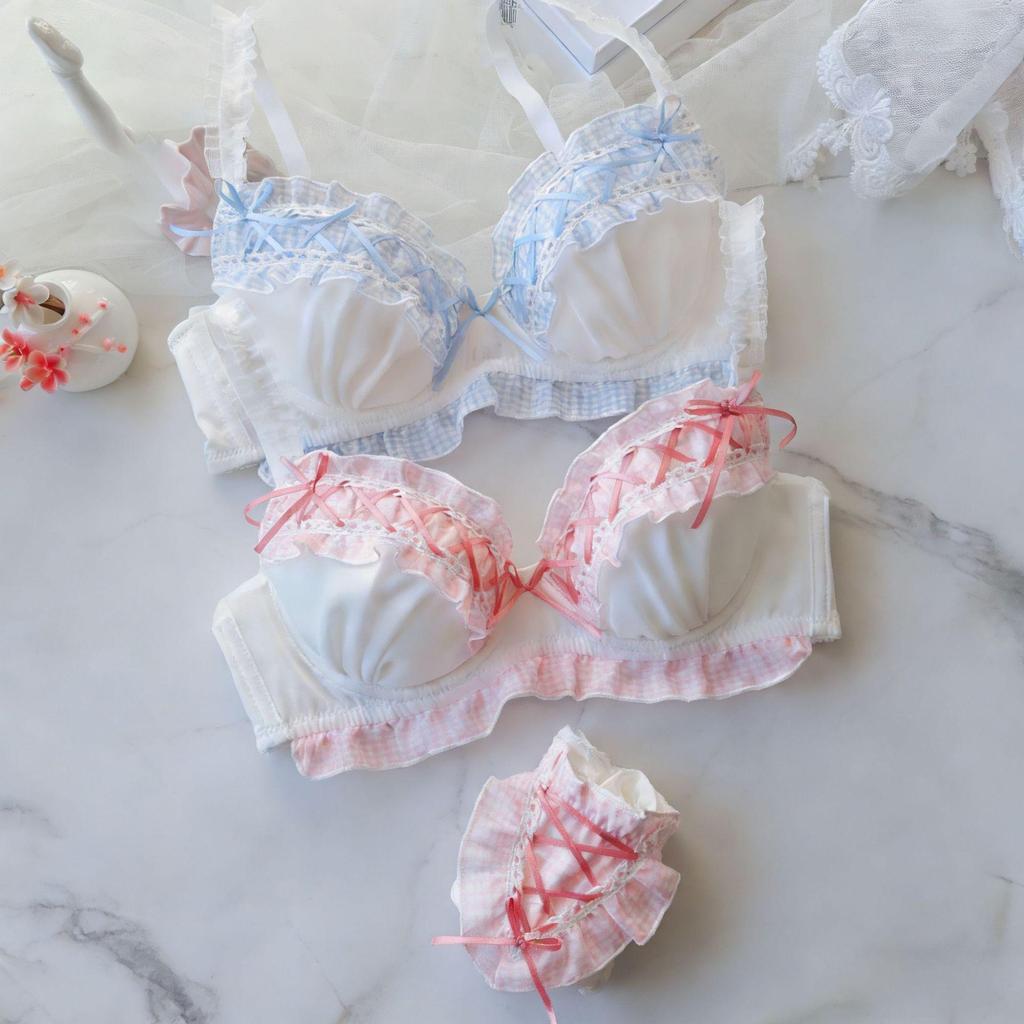 Japoński kratka falbanka push-up komplet bielizny dla młodych dziewcząt