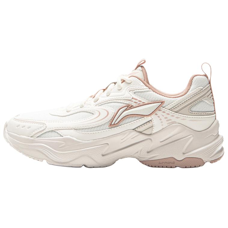 Li Ning Sports Life Collection Textile, Synthetic Leather Cushioning Low top Chunky Sneakers Women's Beige AGCV434-2