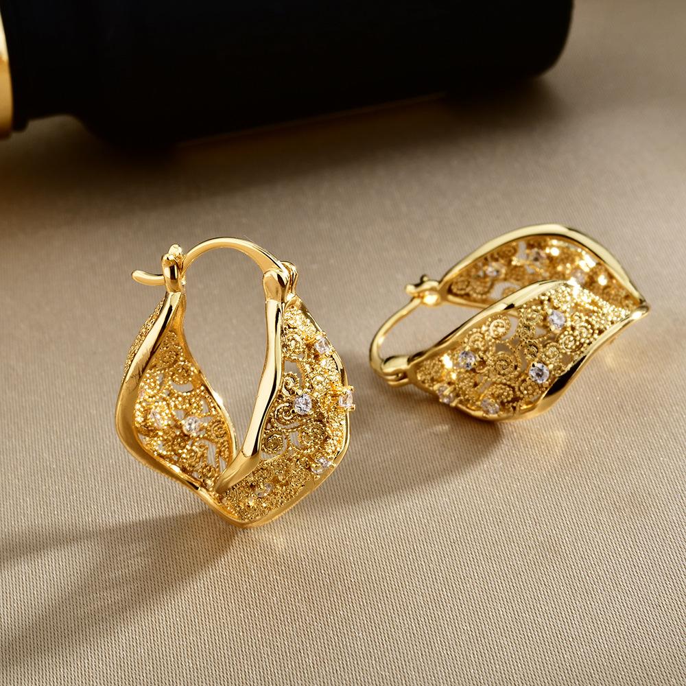 Attributes: Style: Vintage, Shape: U-Shape, Material: zircon crystal, Upper Material: copper alloy, Feature: Twisted Design, Hollow Filigree, Zircon Accents, Light Luxury, Ear Buckles