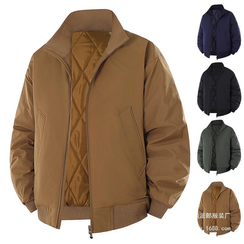 Autumn and Winter Cotton Jacket Men's Winter New Solid Color Trendy Brand Casual Flight Stand-up Neck Cotton-padded Jacket Men