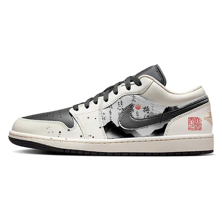 Jordan Air Jordan 1 Low top Vintage Basketball Shoes Men's White Black IH0649-021(Team181-)