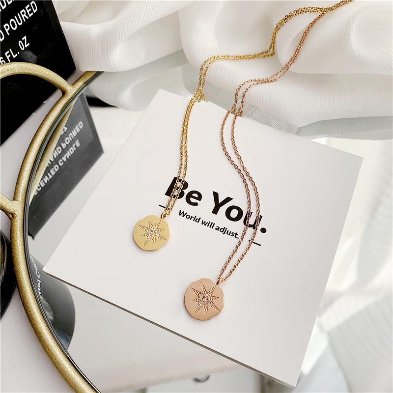 Elegant Eight-Pointed Star Titanium Steel Necklace with Diamond Inlay for Women