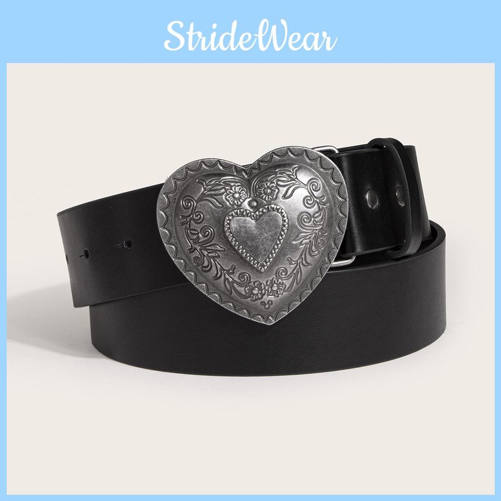 Vintage Heart Embossed Fashion Womens Belt With Alloy Buckle For Denim Jeans Accessory