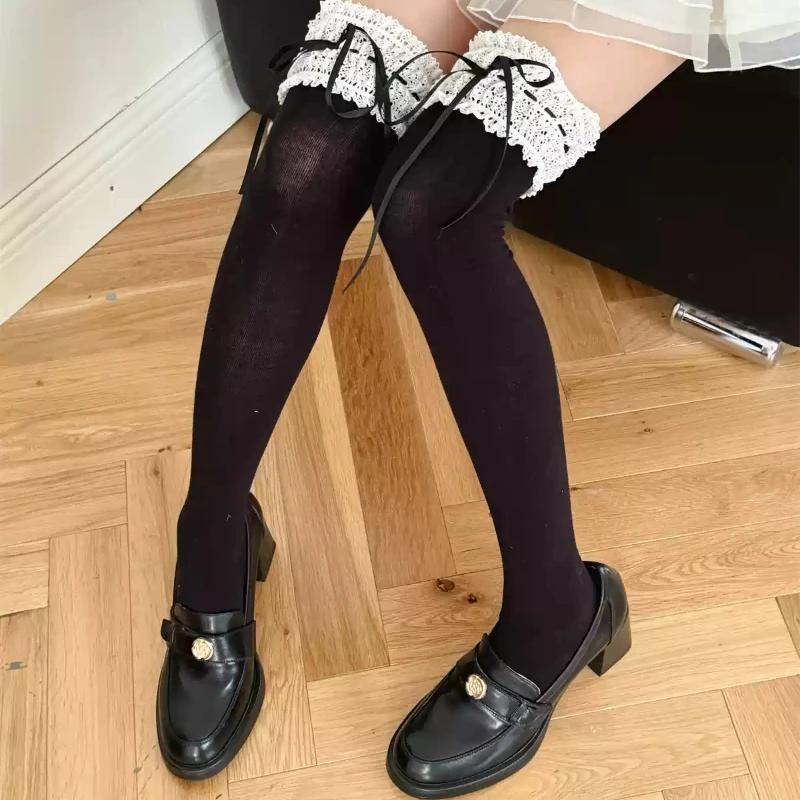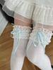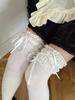 Stockings Women Japanese Style Solid Color Long Socks Thigh High Stockings Sweet Girls Lolita Lace Ruffle Socks Thigh High Socks