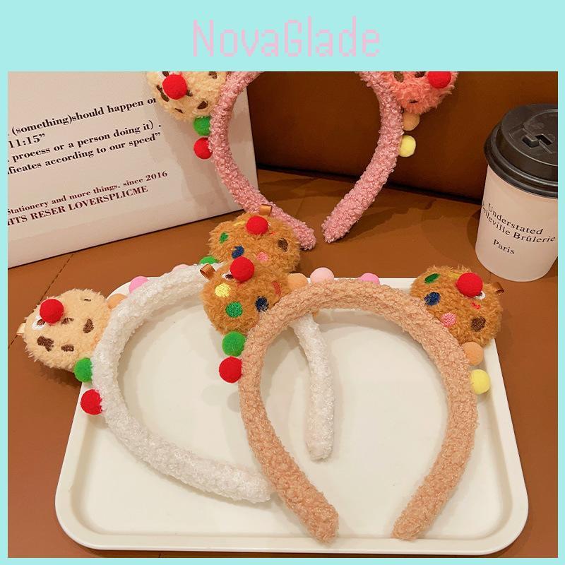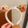 Urocza Puszysta Opaska na Głowę z Twarzą Ciasteczka do Mycia Twarzy Zabawna Kreskówkowa Opaska do Włosów Spinka do Włosów do Makijażu Opaska dla Dzieci Akcesoria do Włosów Różowe Truskawkowe Ciasteczko
