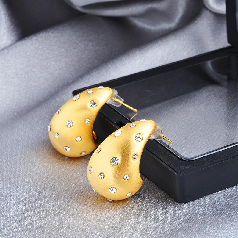 Light Luxury Matte Gold Waterdrop Earrings - Scattered Zircon Inlaid Geometric Stud Earrings for Women Niche Design