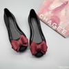 Damskie modne lekkie gumowe płaskie buty z kokardką, casualowe wygodne antypoślizgowe niskie proste z noskiem damskie buty