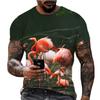 Summer New Flamingo 3D Digital Printed Top Short Sleeve Popular Trend American Fitness Round Neck Loose Men's T-shirt