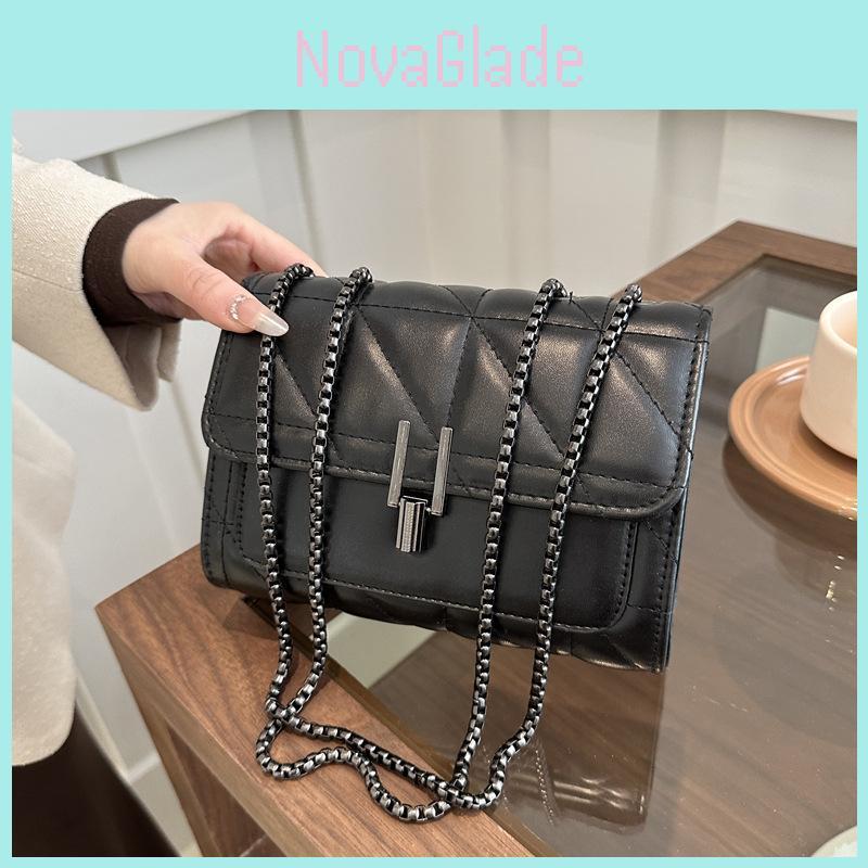 Korean Style Texture Bag 2024 Spring New Diamond Chain Bag Simple Shoulder Bag Crossbody Bag