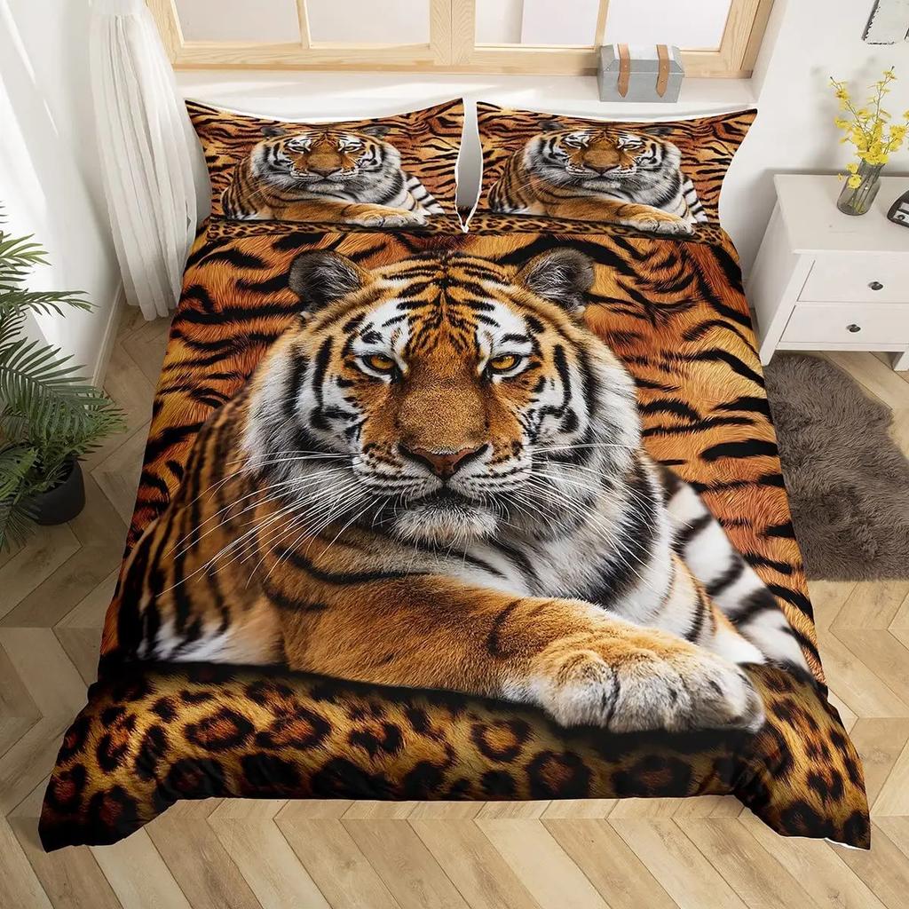 Comforter Tiger 3D Print Queen Size Wild Animals Bedding Set For Kids Teens Room Decor Animal Fur Sets
