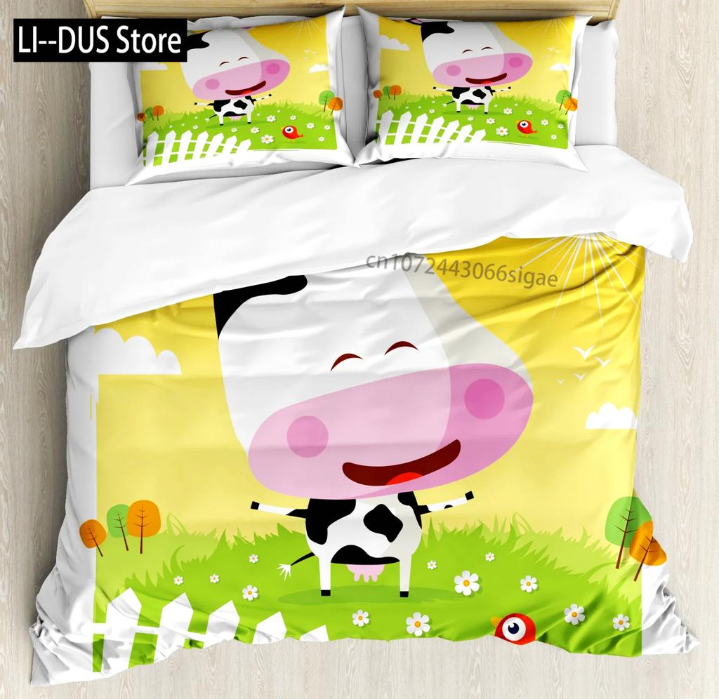 Comforter Cute Milk Cow Print Twin King Queen Microfiber Cartoon Cattle Bedding Set Farmhouse Animal Theme Comforter