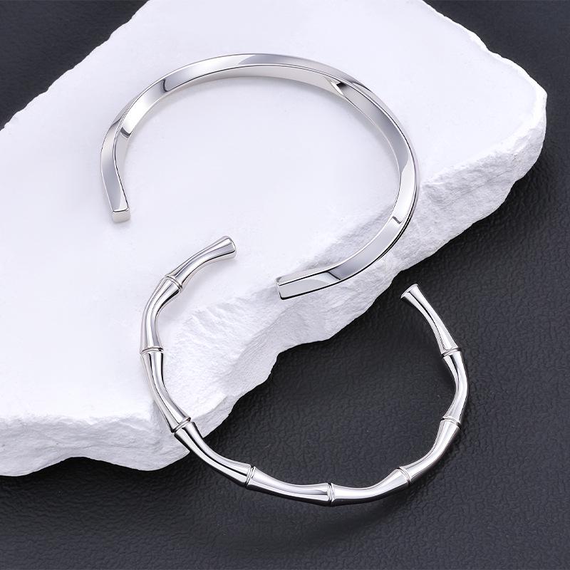 Half-Open Bamboo Joint Mobius Strip Bracelet, Stainless Steel Fashion Wristband for Women