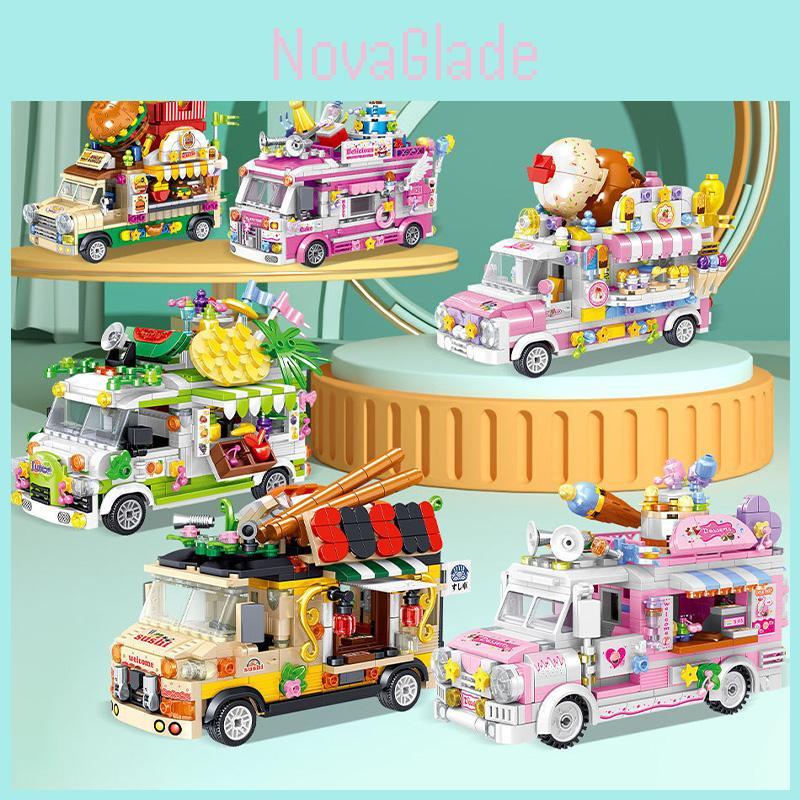 Choose from the following: Fruit car with 604 blocks, Dessert car with 590 blocks, Ice cream car with 593 blocks, Cake car with 608 blocks, and Hamburger car with 638 blocks. Each option offers a unique and engaging building experience, providing endless opportunities for imaginative play. Order now and let the building adventure begin!