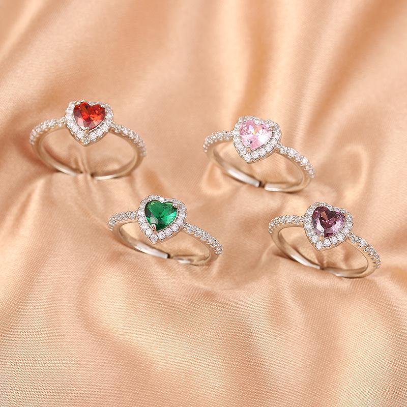 Women's High-End Zirconia Heart Ring: Adjustable Open Design with Light Luxury, White Gold Plating, and Moissanite Inlay.