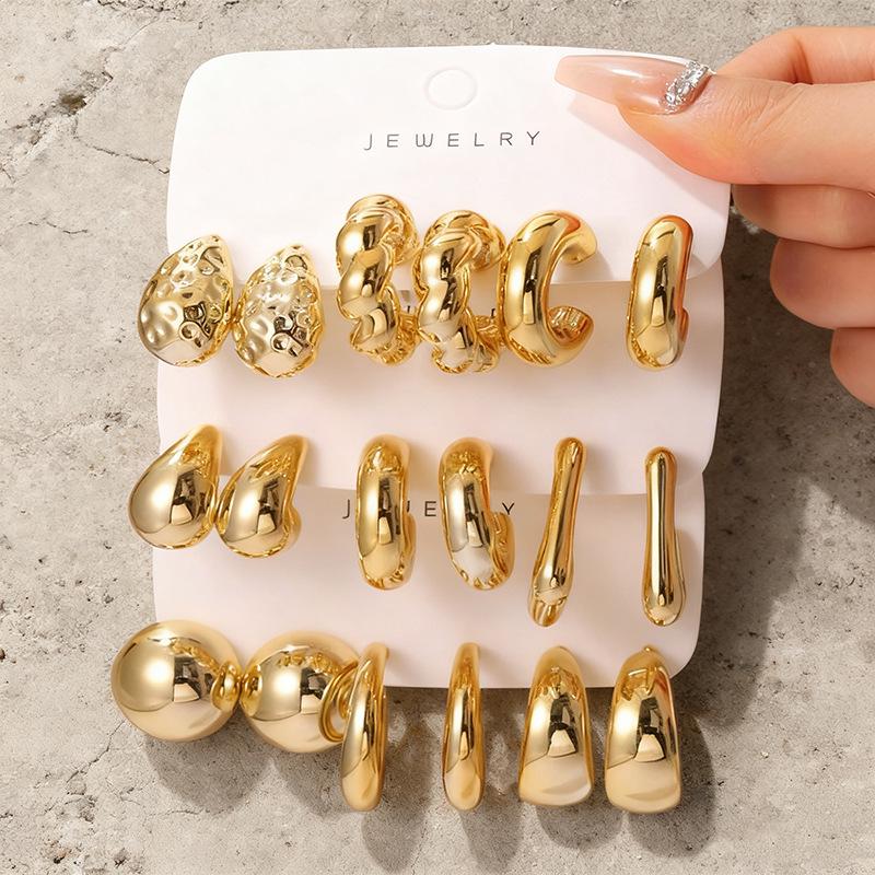 Elegant Geometric Gold Water Drop Ear Cuffs - Women's Luxury Earring Set