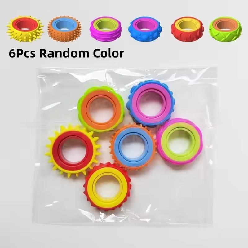 6Pcs New Fidget Toys Silicone Sensory Ring Silicone Decompression Toy Sensory Ring Party Entertainment Games Gift