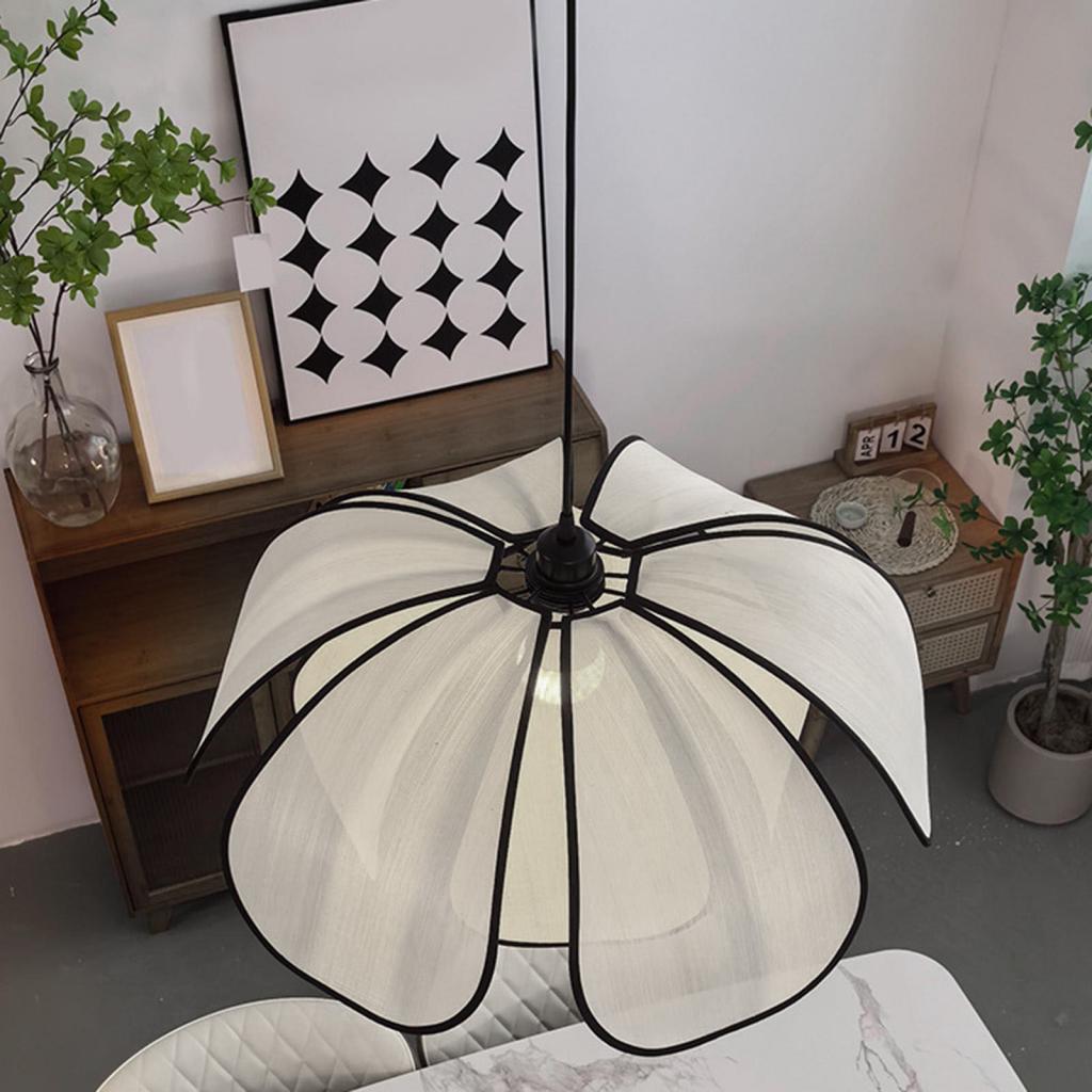 Boho Chandelier Flower Shaped Fabric Lampshade Chandelier Ceiling Light with E27 Bulb for Hallway Living Room Kitchen Study Cafe