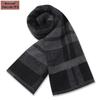 Męski szalik zimowy w czystą szarość w kratę, mieszanka wełny - gruby i ciepły