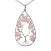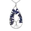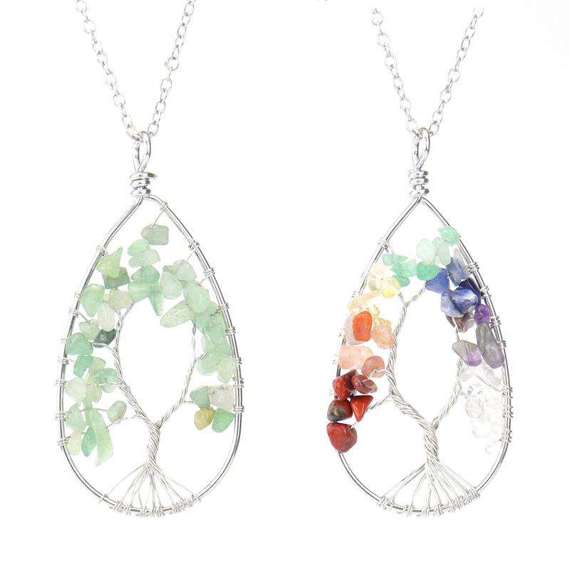 Silver Tree of Life Necklace with Seven-Color Natural Stone and Crystal Water Drop Pendant