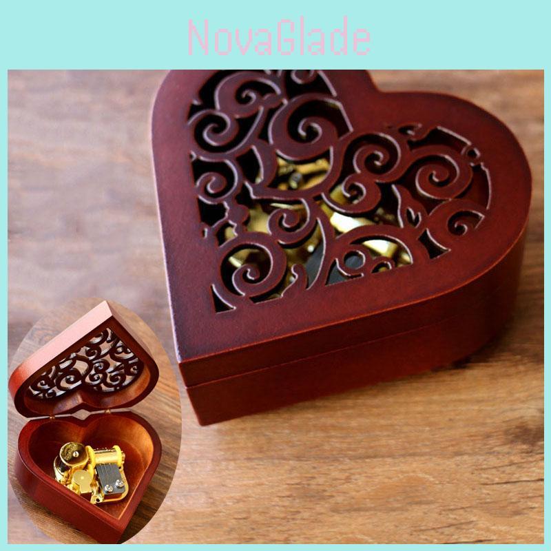 Urocza prostokątna rzeźbiona drewniana pozytywka nakręcana z melodyjnymi melodiami