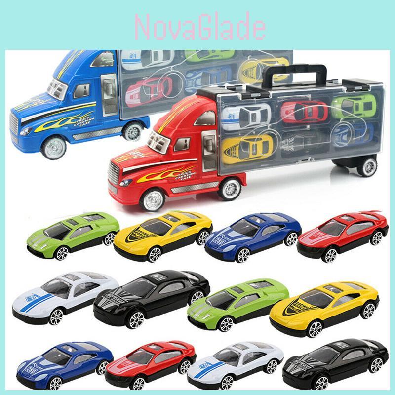 Durable Kids Vehicles Transport Car Carrier Semi Truck With 12 Mini Cars Gift Set