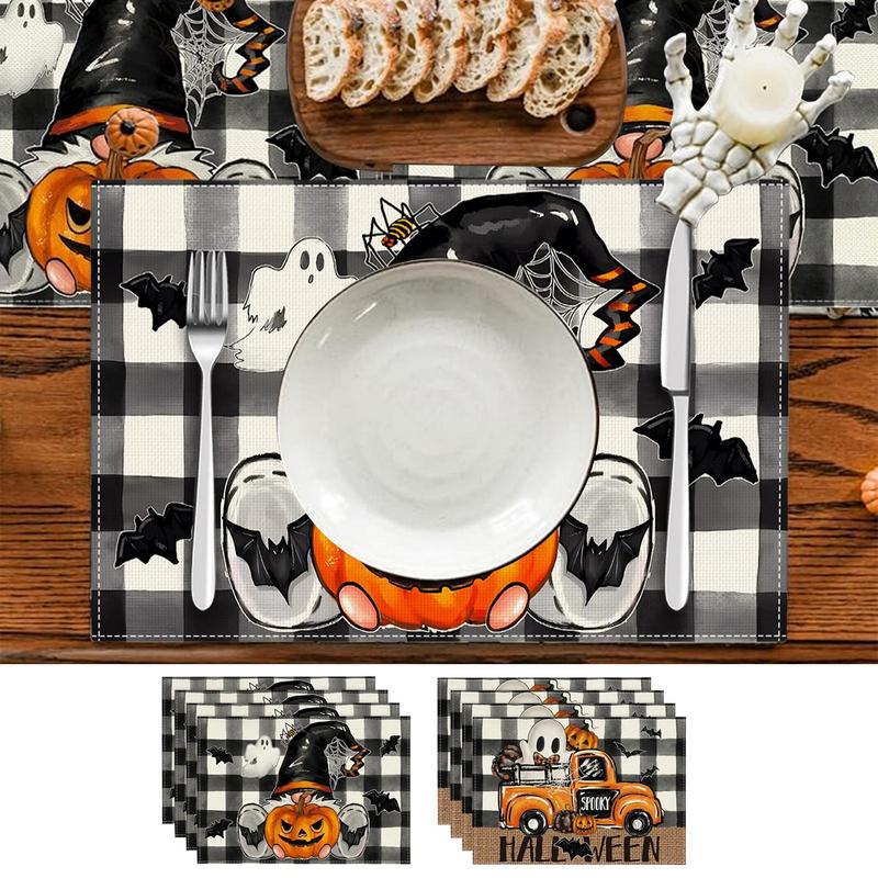 Halloween Table Mat Bat Ghost Gothic Pumpkin Placemat 4PCS Heat-resistant Non-slip Halloween Decor 45x30cm Farmhouse Insulation