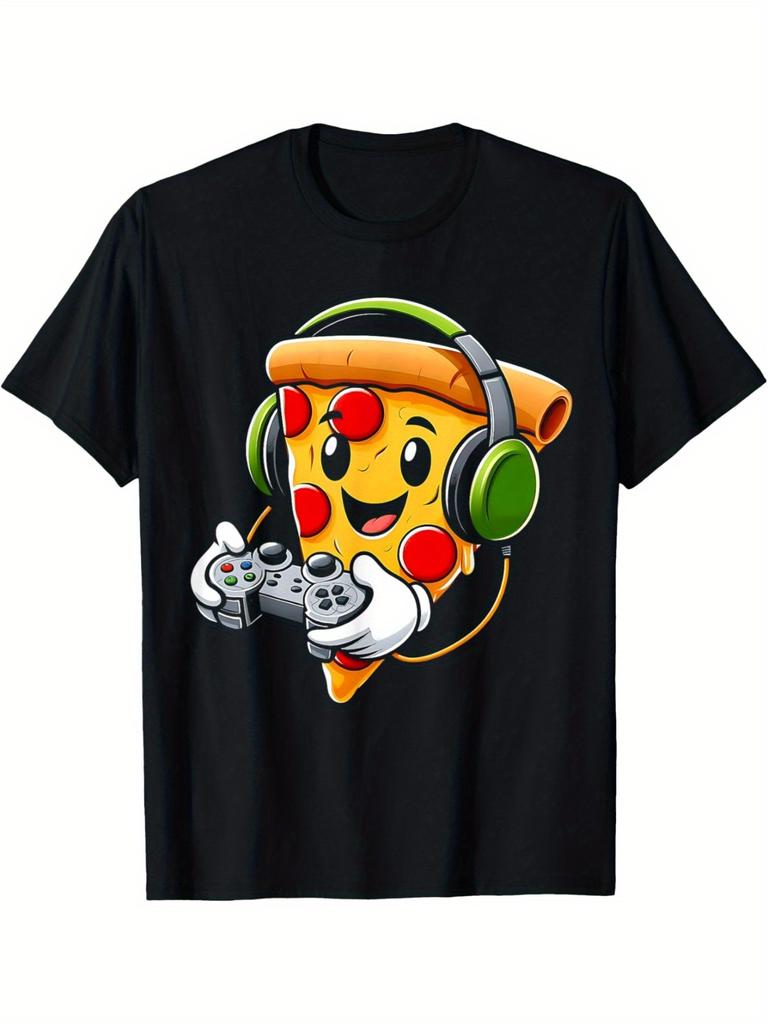 Funny Gamer Pizza Gaming Food Lovers Play Video Games design100 cotton Oneck short sleeve printed mens Tshirt
