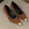 Autumn New Thin Heel Single Shoes Women's Fashion Pointed Shallow Mouth Suede Non-slip Low-top Shoes