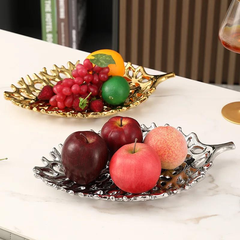 Perforowana Ceramiczna Taca na Owoce Złota Taca z Liśćmi Pojemnik do Przechowywania na Biurko Taca Liściasta Tacka do Przechowywania Akcesoria do Dekoracji Domu