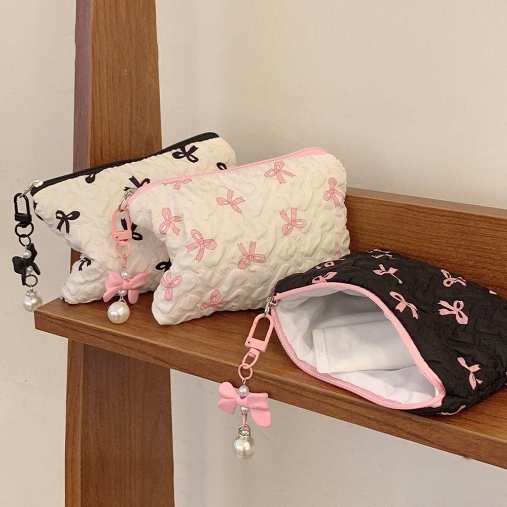 Fashion Bowknot Print Bow Makeup Bag Large Capacity Storage Pouch Cosmetic Bag Toiletry Bag Travel