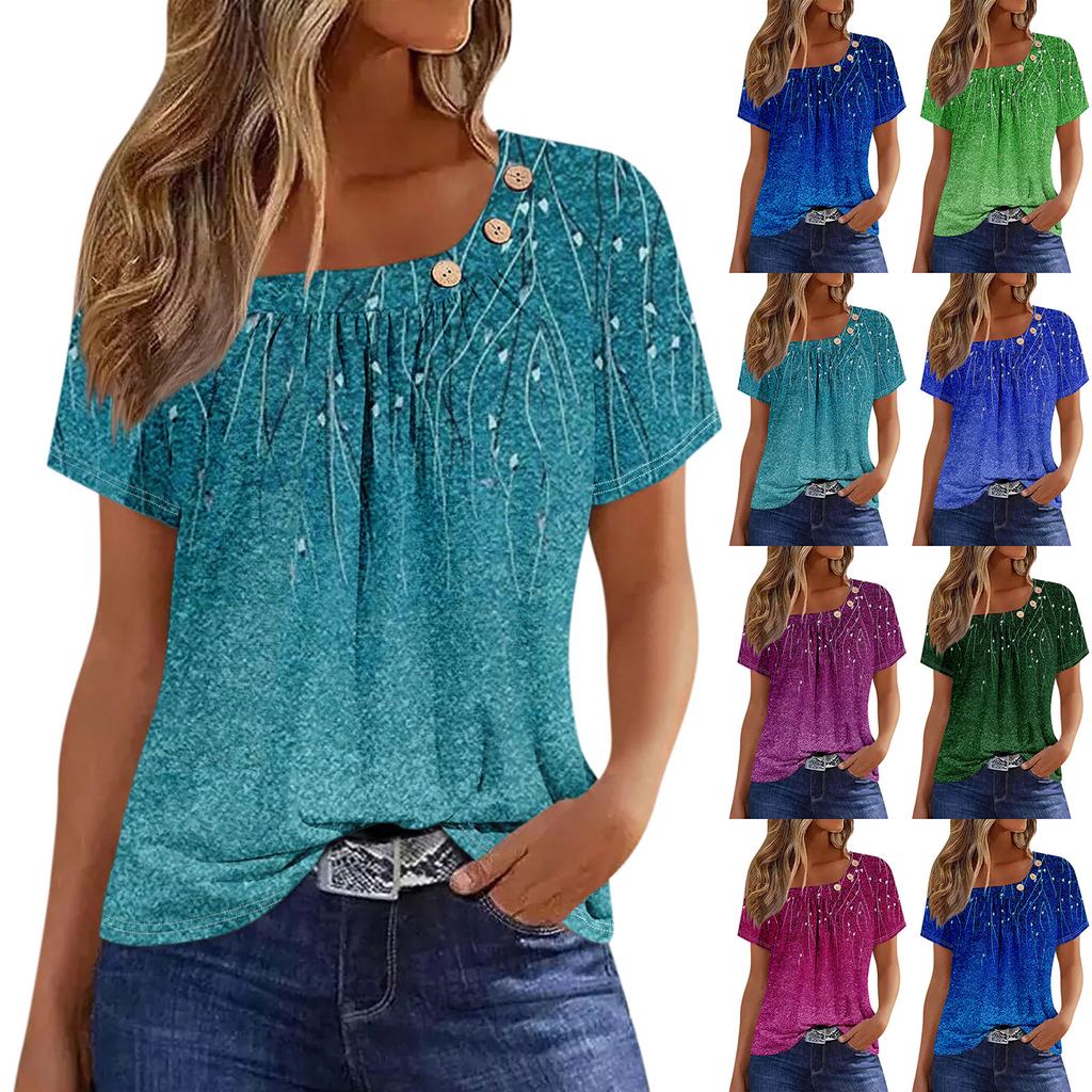 Summer Tops For Women Print For Women O-Collar Short Sleeve Comfy Womens Tops Tshirtss