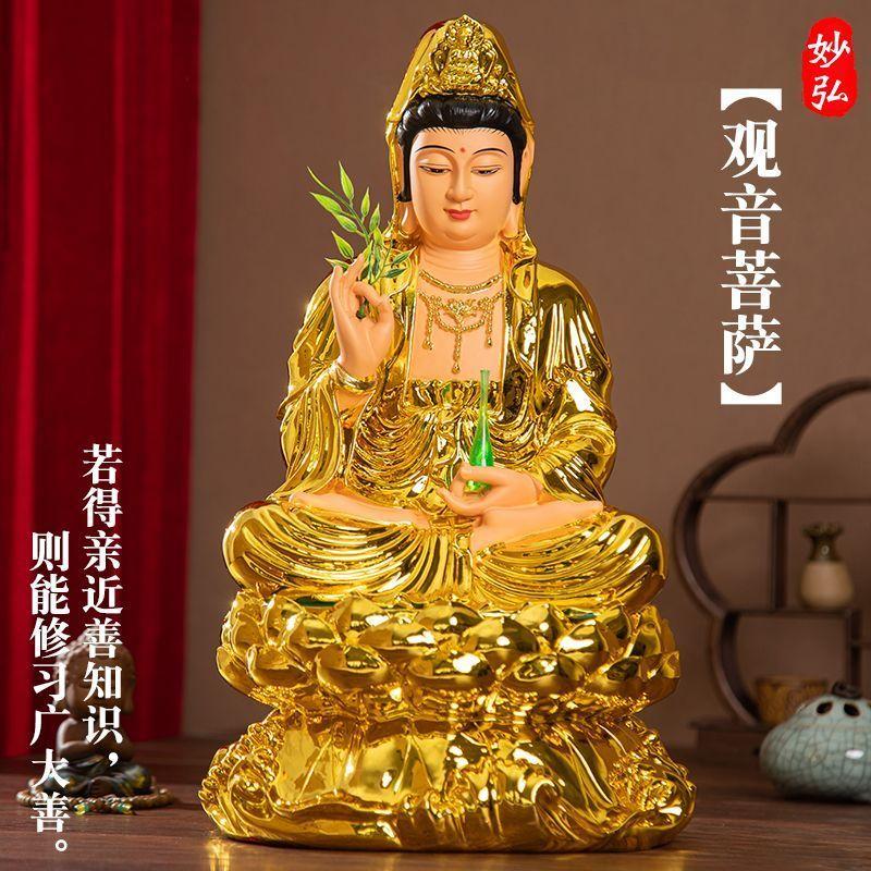Ręcznie robiona żywiczna świątynia Buddy Guanyin, ozdoby domowe, Bóg Guanyin z Nanhai, 30cm, 11,8"(H)