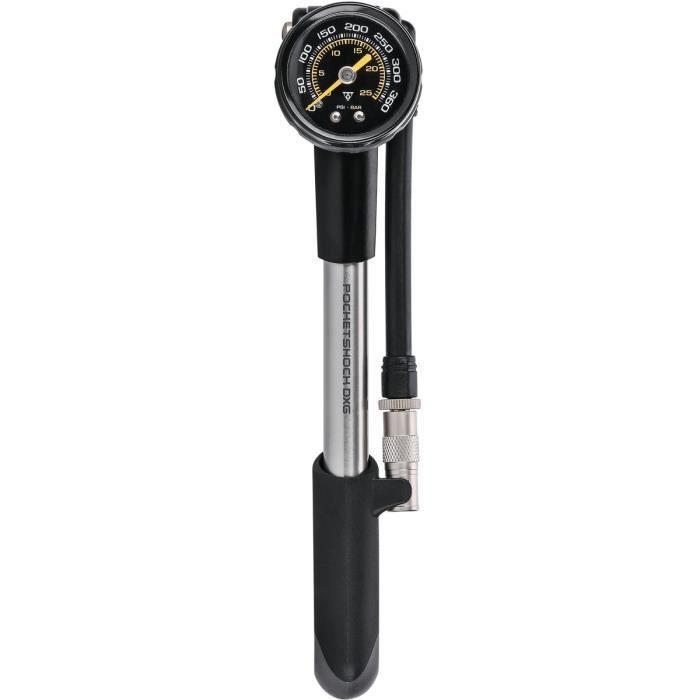 Pompe à vélo pour fourche/amortisseur Topeak Pocket Shock DXG - noir/argent - Pression maximale 24.8 bar