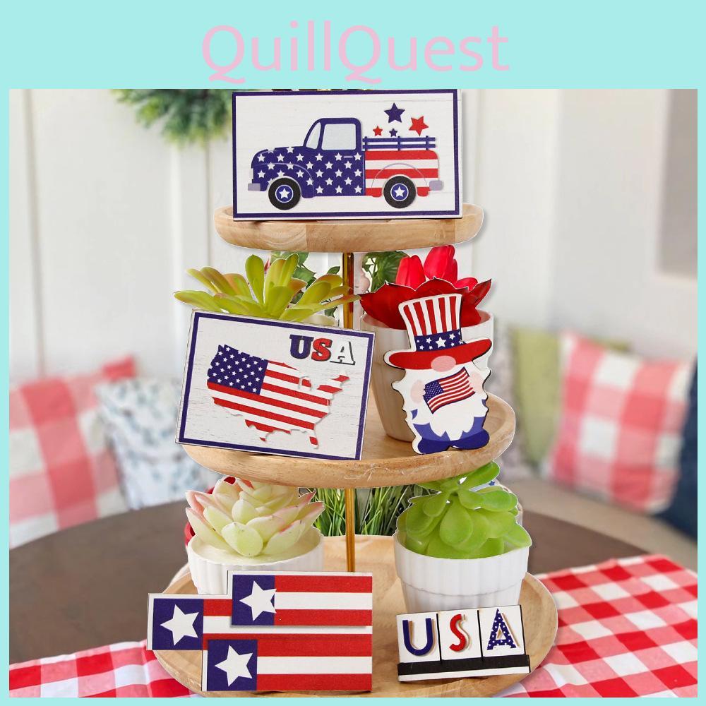 Świętuj ducha Dnia Niepodległości z naszą wykwintną kolekcją drewnianych dekoracji stołowych, zaprojektowanych, aby podnieść Twoją świąteczną atmosferę.. Wykonane z dbałością, te żywe drewniane tace oddają esencję święta, czyniąc je idealną ozdobą centralną na Twoje obchody 4 lipca.. Każdy element prezentuje unikalne wzory, w tym urocza mapa USA z zabawnym krasnalem samochodowym, flaga amerykańska w kształcie serca, motywy flagowe usiane gwiazdami, świąteczna aranżacja trójkątnych flag oraz kapryśna flaga na klapę bagażnika z motywem samochodowym. Te urocze dekoracje nie tylko nasycają przestrzeń imprezową patriotycznym stylem, ale także służą jako niezapomniane pamiątki na nadchodzące lata.