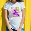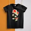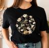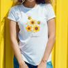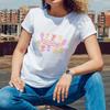 Artystyczna damska koszulka z krótkim rękawem z motywem wiersza o naturze, ilustracją kwiatów i grafiką z cytatem literackim, dla eleganckiego wyglądu