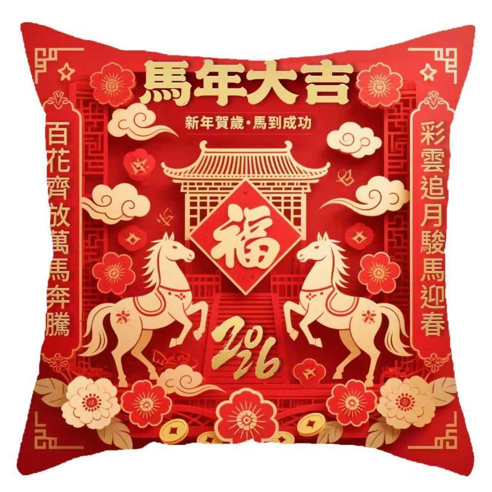 New Year of the Horse Spring Festival Cushion Cover Removable Pillow core protection Cushion Slipcover Square Shape Pillowcase