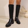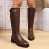 Vintage Women Slim Knee-High Boots Fashion Belt Buckle Shoes Autumn Winter Low Heel Shoes Ladies Comfortable Modern Long Booties