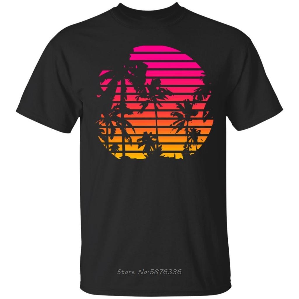 Black Navy Tshirt Sunset Palm Tree Outrun Synthwave New Retro Wave Cartoon T Shirt Men Unisex New Fashion Tshirt Tees