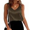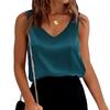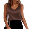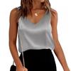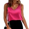 Damskie satynowe topy bez rękawów z dekoltem w serek, swobodne bluzki z krótkim rękawem, letnia podstawowa koszulka bez rękawów